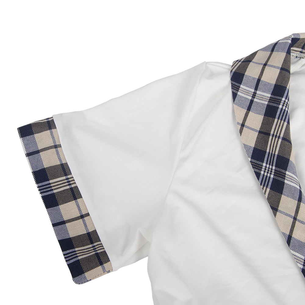 Step into playful mischief with the Ivy Academy Sweetheart Roleplay Costume — a flirty twist on the classic schoolgirl look. This two-piece set features a cropped tie-front blouse with plaid lapel accents and a matching pleated mini skirt trimmed in delicate lace, striking the perfect balance between cute and captivating.