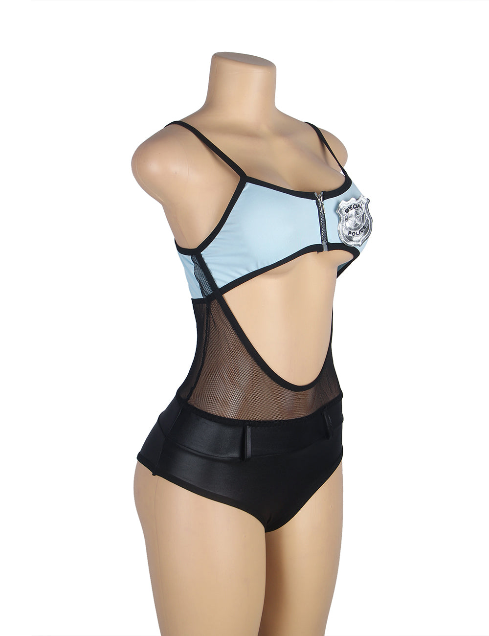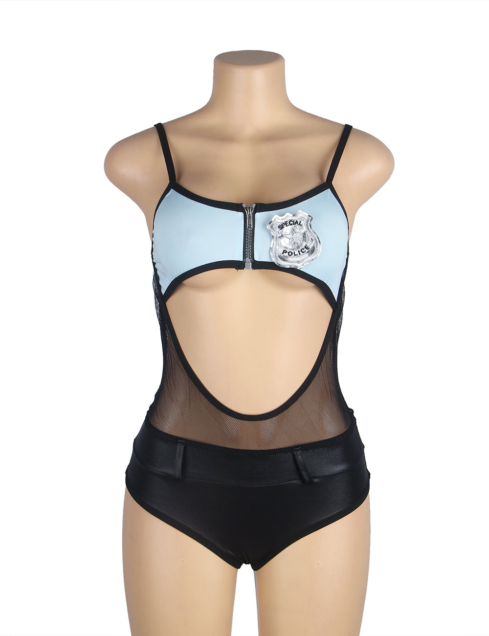 Serve looks and lay down the law in the Lexi Lawman Roleplay Costume — a bold, body-hugging ensemble that’s made to command attention. Featuring a daring open-cut design with a zip-up blue top, mesh midsection, and cheeky bottom, this outfit redefines authority with a sensual twist.
